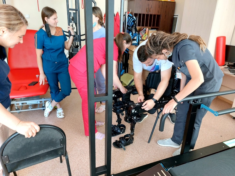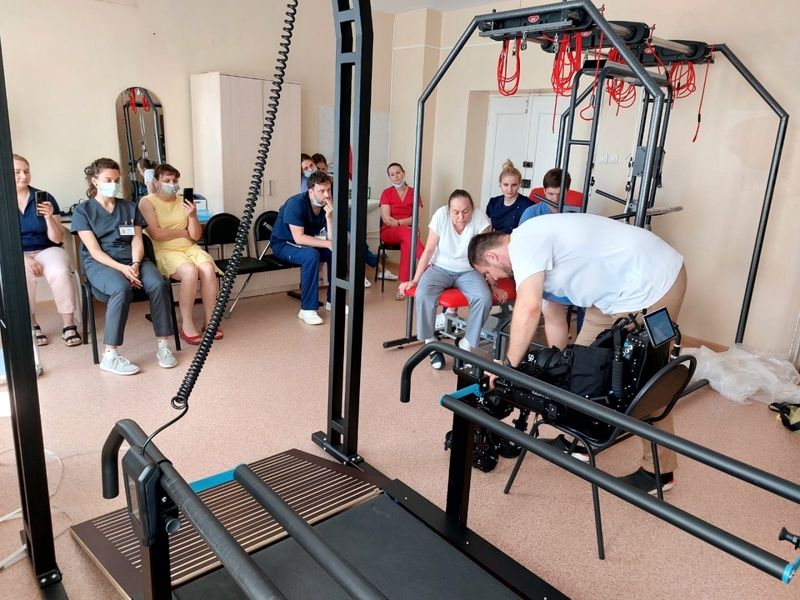 13 специалистов областной больницы прошли специальный курс обучения по использованию экзоскелета.